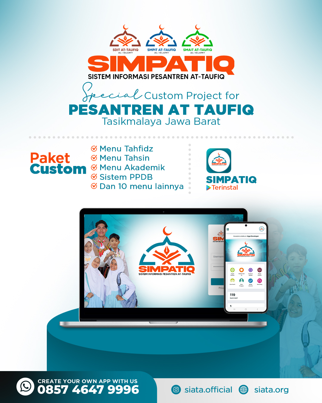 Alhamdulillah SIATA sdh dipercaya lebih dari 100 sekolah islam dan pesantren, yg tersebar di 17 provinsi dan 46 kabupaten/kota di Indonesia.